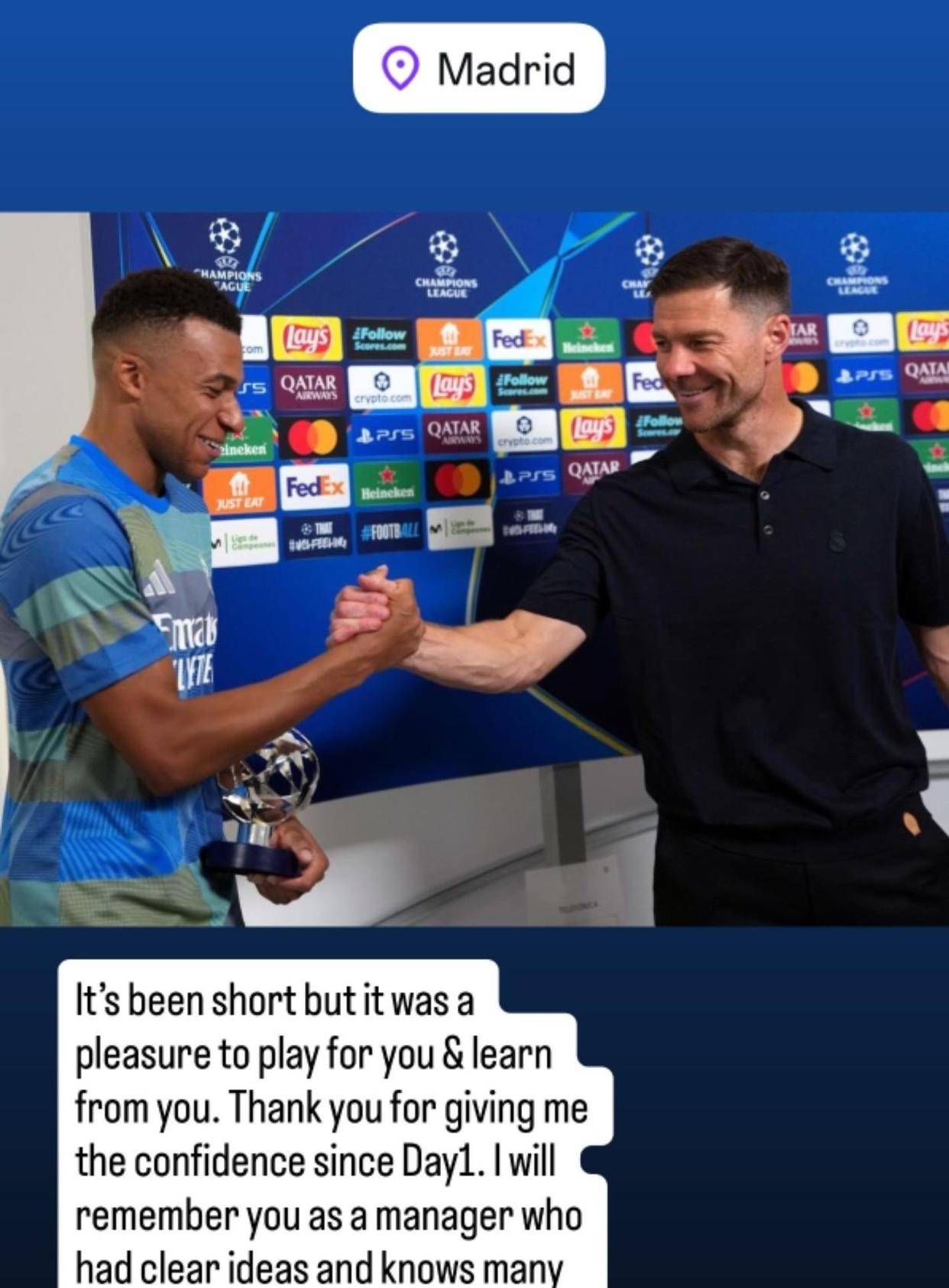 姆巴佩那句“为您效力很荣幸”的祝福,也被置于放大镜下解读。 决赛颁奖时,有媒体捕捉到阿隆索招呼球员列队向冠军巴萨致意,但姆巴佩等几名球员并未配合。 这个细节一度被猜测为将帅失和的证据。 但随着阿隆索下课和姆巴佩迅速公开祝福,主流分析更倾向于认为,这只是姆巴佩个人好胜心极强的性格体现,输球后不愿进行这种礼节性举动,而非针对教练本人。 但这恰恰从侧面反映了更衣室内的一种高压情绪:球员,尤其是巨星,对失败的厌恶同样刻骨铭心,一场关键失利带来的挫败感,弥漫在整个更衣室,这也可能间接影响了高层的决策氛围。